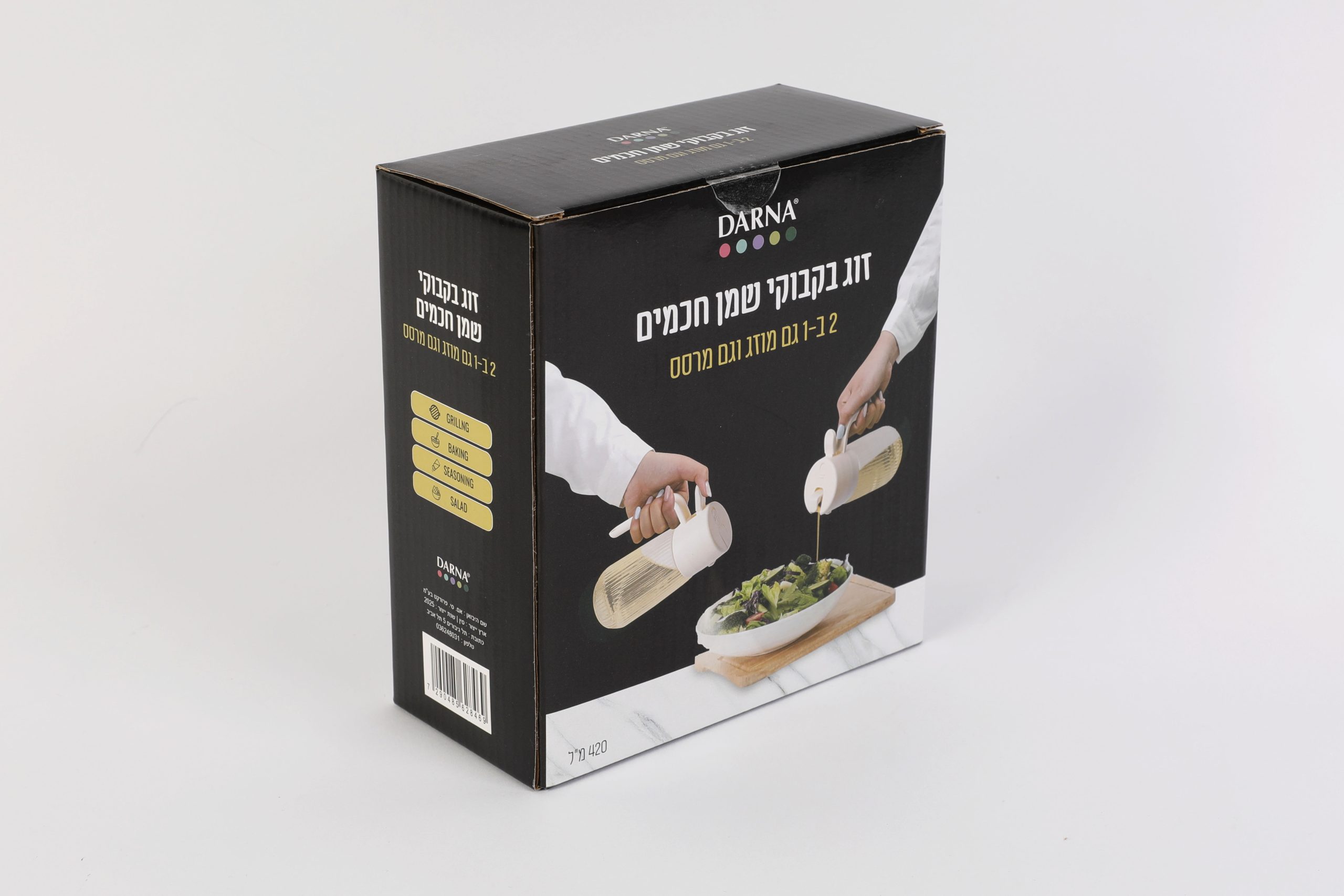 זוג מתקנים לשמן רב תכליתי מציע את הנוחות גם של תרסיס שמן וגם של מזיגת שמן, מתאים למגוון רחב של הכנת מזון כגון רוטב לסלט, טיגון במחבת, צלייה, גריל ועוד